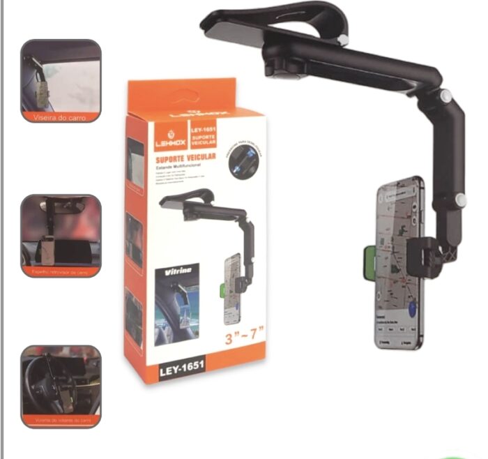 Suporte de celular veicular para retrovisor lehmox ley – 1651